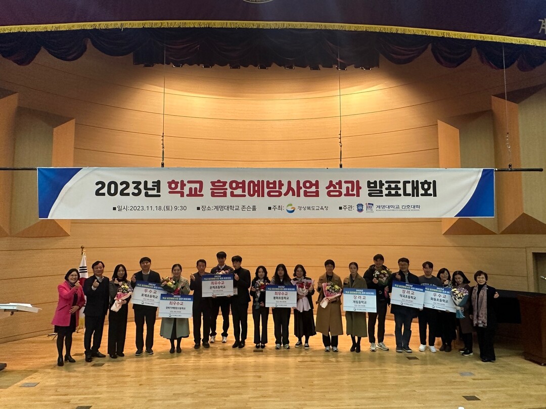 [대학저널 이선용 기자] 계명대학교 간호대학이 18일 계명대 성서캠퍼스 의과대학 존슨홀에서 경북교육청 학교 흡연예방사업 담당교사 및 교육지원청 관계자 총 120여 명이 참석한 가운데 ‘2023년 학교 흡연예방사업 성과 발표대회’를 가졌다.