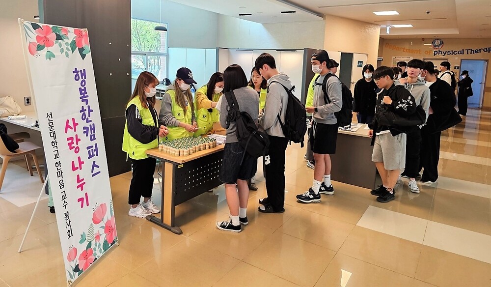 [대학저널 온종림 기자] 선문대학교는 여성 교수로 구성된 한마음교수봉사회가 지난 19일 중간고사를 치르는 학생들을 격려하기 위해 ‘사랑의 김밥’ 나눔 행사를 했다고 20일 밝혔다.