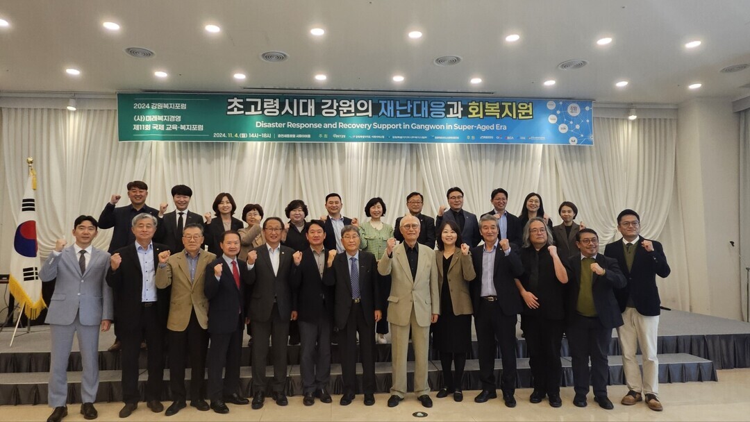 강원특별자치도사회복지협의회와 강원특별자치도사회복지사협회, 강원특별자치도사회서비스원, 사단법인 미래복지경영이 주최한 이번 포럼은 지난 10월 19일 (사)미래복지경영의 ‘제11회 국제 교육·복지포럼’을 겸해 진행되었으며, ‘초고령시대 강원의 재난대응과 회복지원’을 주제로, 직·간접 적 재난피해에 대응해 사회복지분야가 수행해야 할 주요 역할과 강원 재난복지체계 구축 방향을 모색해보고자 하는 취지로 마련됐다.