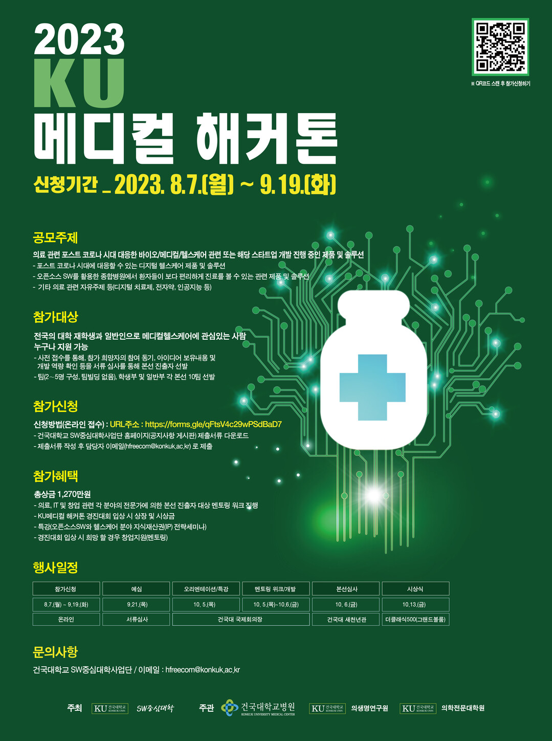 IT지식을 보유하고 메디컬 헬스케어에 관심있다면 누구나 지원이 가능하다. 2~5명의 팀 단위로 신청해야 하며, 건국대 SW중심대학 홈페이지에서 제출서류를 작성해 제출하면 된다.