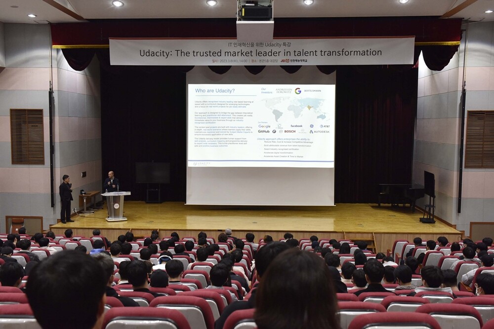 인천재능대가 지난 8일 ‘Udacity: The trusted market leader in talent transformation’을 주제로 세미나를 열고 있다. 사진=인천재능대 제공 |