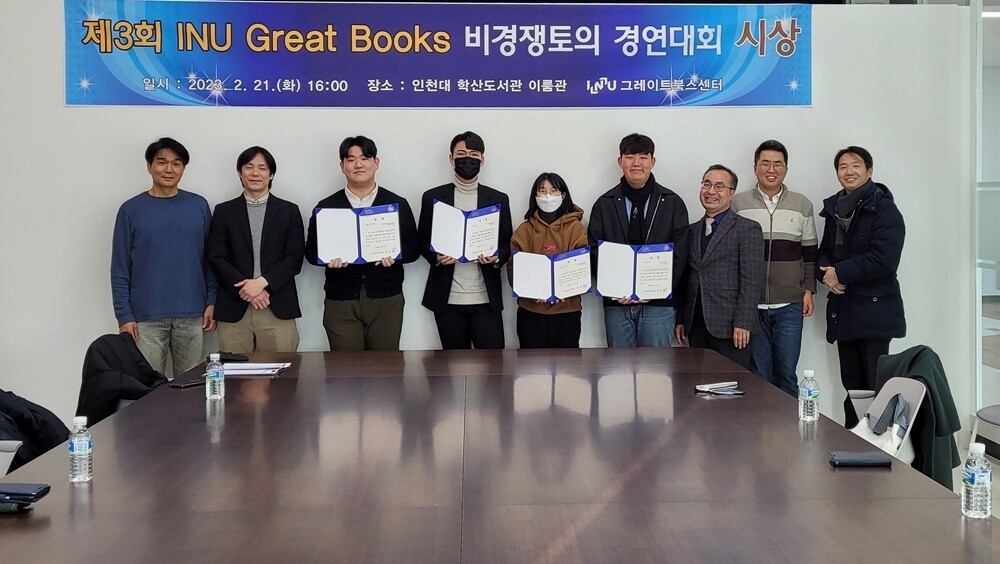[대학저널 온종림 기자] 인천대학교는 지난 21일 학산도서관에서 제3회 INU Great Books(이하 INU GB) 비경쟁토의경연대회 시상식을 했다고 23일 밝혔다.
