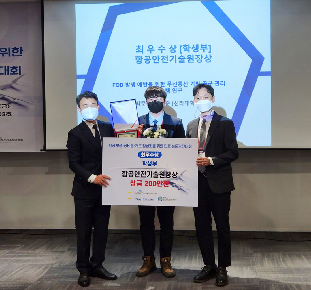16일 신라대에 따르면 항공정비학과 3학년 박준이 학생과 김명준 지도교수는 ‘FOD 발생 예방을 위한 무선통신 기반 공구 관리 시스템 연구’를 주제로 학생부에 참가, 대회 최고상인 최우수상을 받았다.