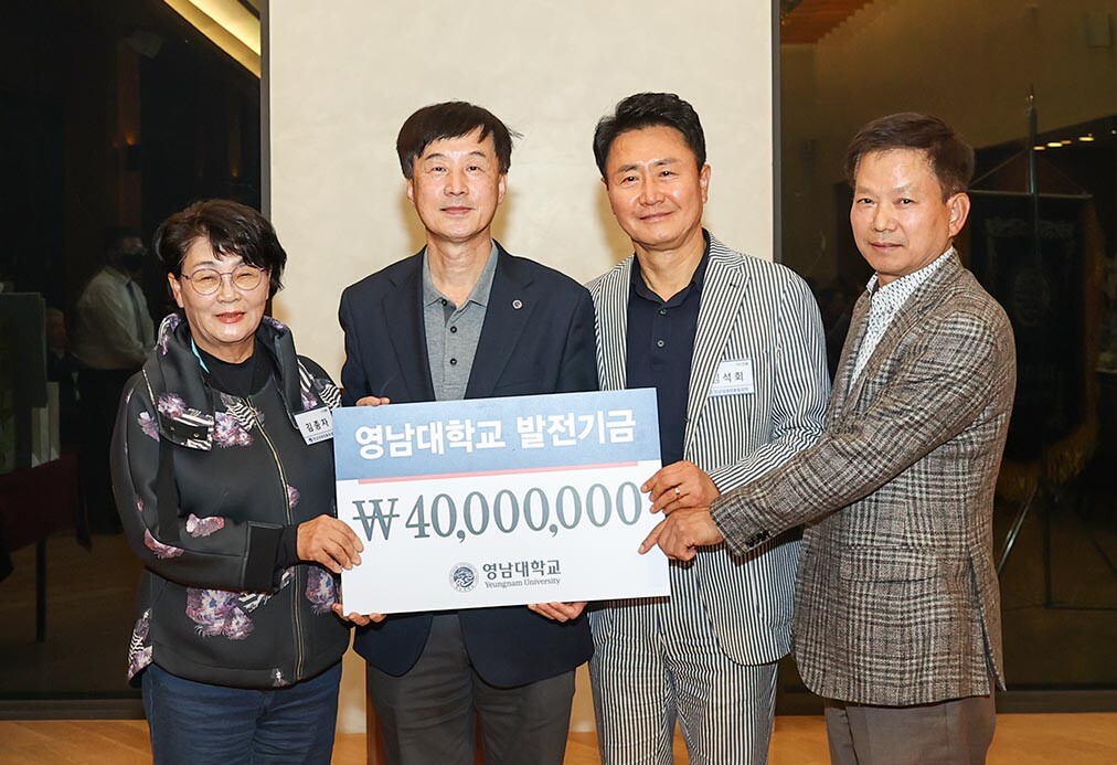 27일 영남대에 따르면 이 대학 재경총동창회는 매년 가을 재경동문 행사에서 동문들이 대학 발전기금을 기탁해 오고 있다. 올해는 지난 21일 열린 영남대 재경총동창회 주최 ‘제19회 영남대학교 총장배 골프대회’에서 주요 동문들이 대학 발전기금 4000만 원을 기탁했다.