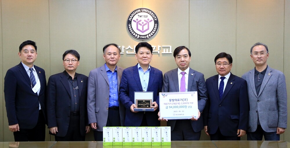 동방의료기는 인체와 사물 온도 측정이 가능하며, 최대 10개까지 측정 체온을 저장할 수 있는 비접촉 적외선 체온계 2000개를 한신대에 기증했다. 약 9400만원 상당의 금액이다.