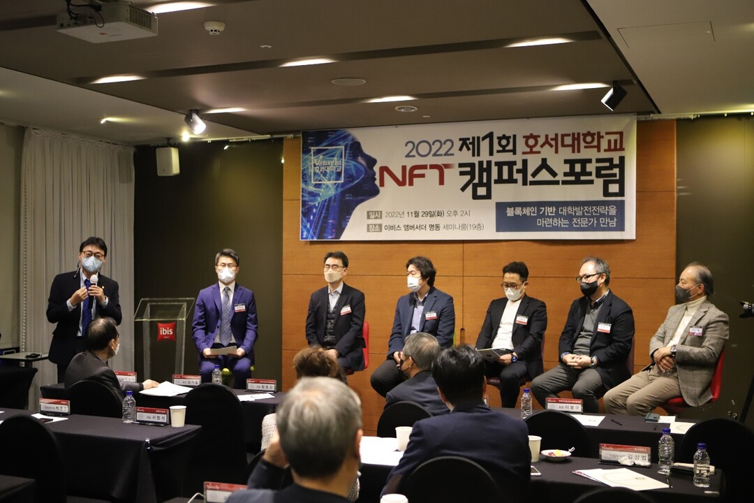 [대학저널 오혜민 기자]호서대학교는 ‘블록체인 기반 대학발전전략을 마련하는 전문가 만남’을 주제로 제1회 NFT(Non-Fungible Token·대체불가토큰) 캠퍼스포럼을 지난 29일 명동 이비스 앰버서더에서 열었다고 1일 밝혔다.
