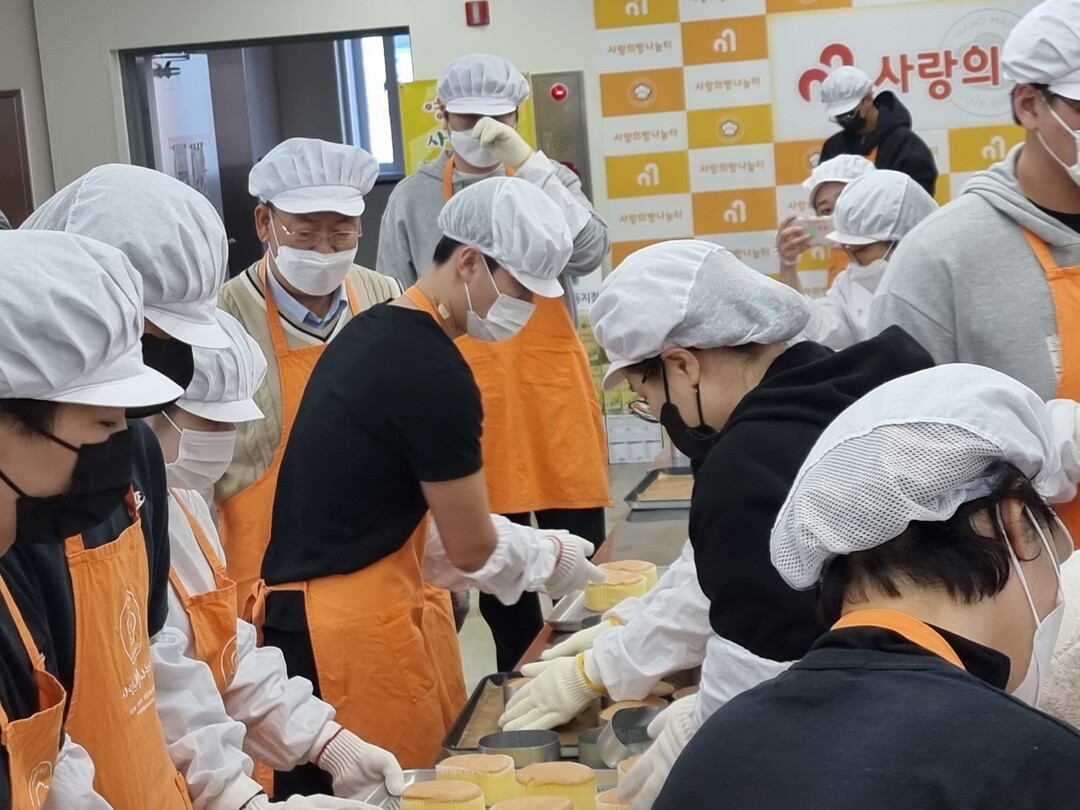 대구대 국제관계학과 학생들이 소외된 이웃과 노숙자들에게 전달할 사랑의 빵을 만들고 있다. 사진=대구대 제공 |