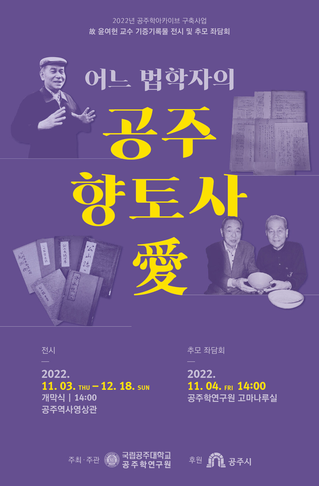 이번 전시회에서는 바로 윤 교수의 공주향토사애를 확인할 수 있는 기록물 약 100여점을 소개한다.