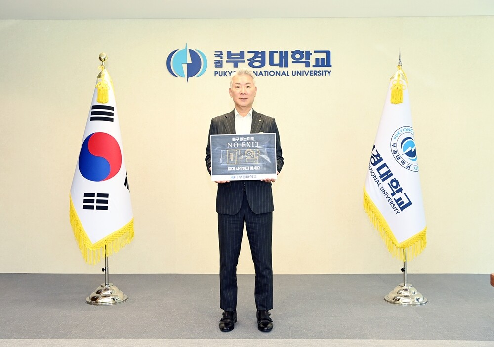 [대학저널 온종림 기자] 장영수 부경대학교 총장이 마약 근절을 위한 ‘NO EXIT’ 릴레이 캠페인에 8일 동참했다.