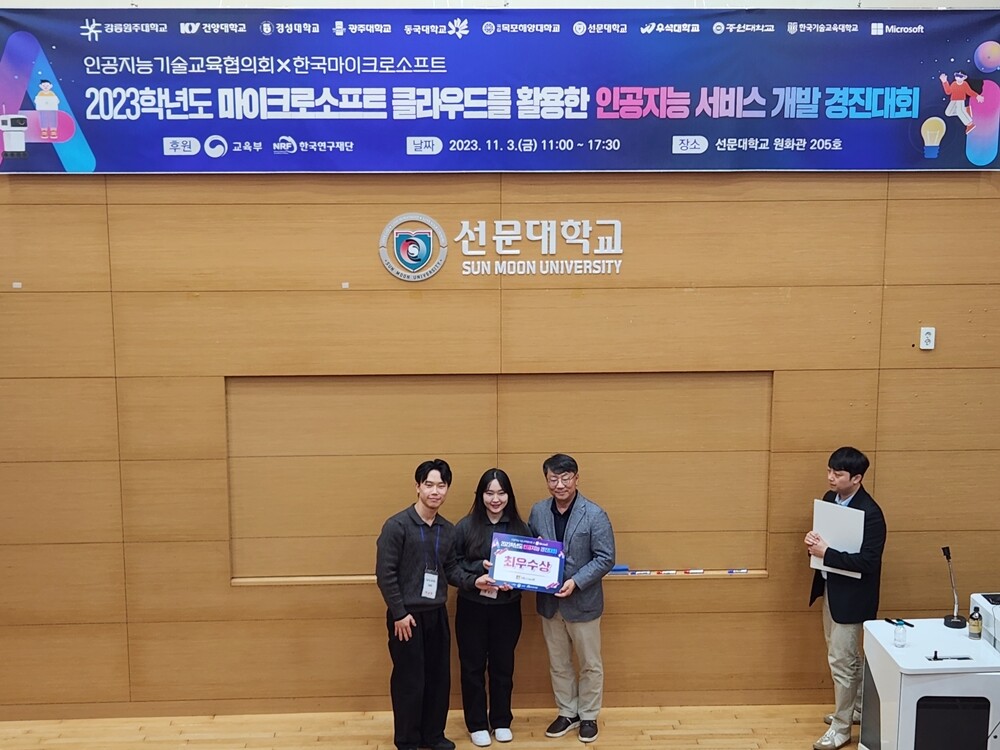 [대학저널 온종림 기자] 한국기술교육대학교 학생들이 지난 3일 선문대에서 열린 ‘2023학년도 인공지능 서비스개발 경진대회’에서 최우수상을 수상했다.