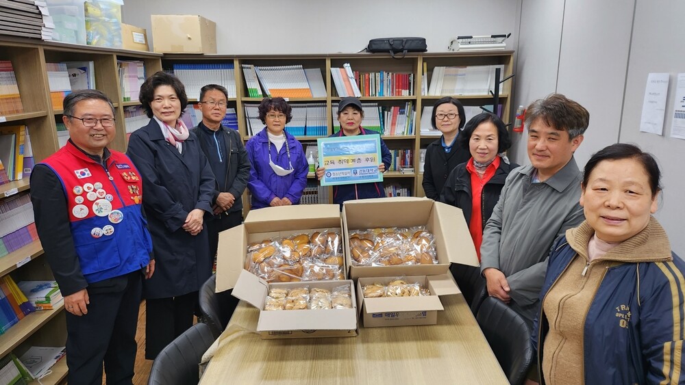 경동대 호텔조리학과 봉사동아리 투게더 회원들은 지난달 29일 RCY 학생들에게 제과이론과 마들렌, 오트밀 쿠키 만들기 실습 교육을 한 바 있다. 학생들이 만든 쿠키를 전달하자 노성야학 만학도 어르신들은 즐겁게 다과를 나눴다.