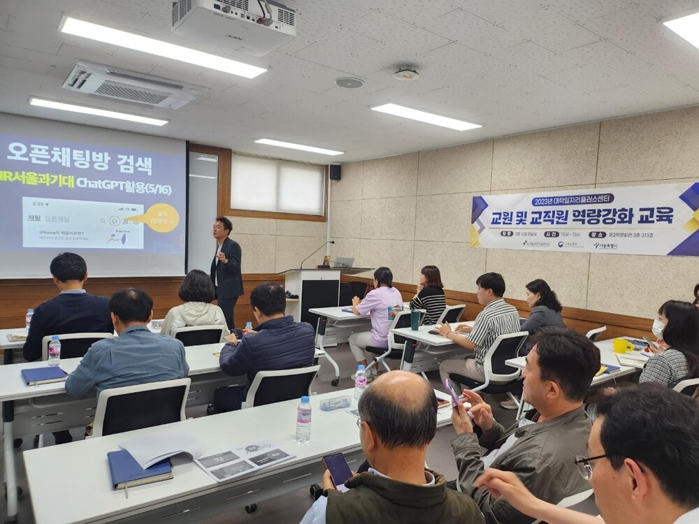 서울과기대가 지난 16일 교수와 교직원을 대상으로 ‘챗GPT를 활용한 취업코칭’ 교육을 실시하고 있다. 사진=서울과기대 제공 |