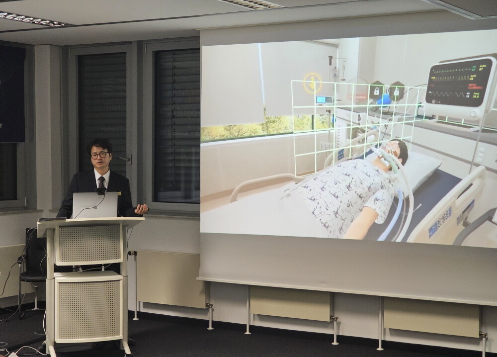 [대학저널 온종림 기자] 경복대학교 영상미디어콘텐츠 이승현 교수(사진)가 22일(현지 시간) 독일 프랑크푸르트 에쉬본(Frankfurt Eschborn)의 중소벤처기업진흥공단 글로벌 비즈니스 센터(KOSME Global Business Center)에서 열린 '2024 글로벌 첨단바이오·디지털 융합 포럼'에서 바이오헬스 분야의 디지털트윈 기술을 선보였다.