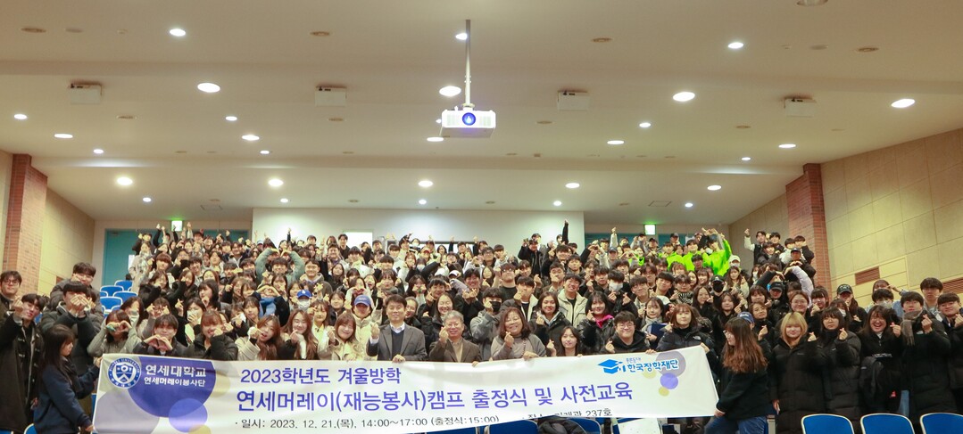 [대학저널 이선용 기자] 연세대학교 미래캠퍼스 연세머레이봉사단이 지난 12월 21일 학내 미래관에서 ‘2023학년도 겨울방학 연세머레이캠프 출정식’을 가졌다.
