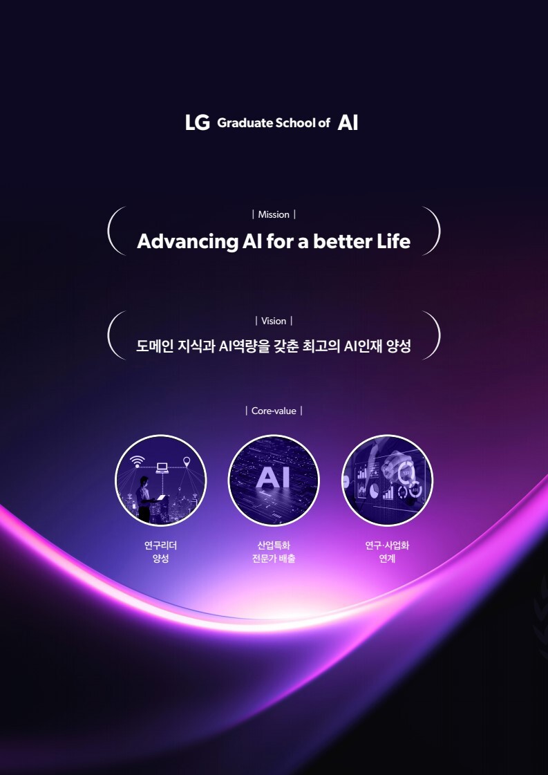 LG AI대학원은 지난해 1월 제도가 시행된 이후, 교육부의 인가를 받아 설치된 최초의 사내대학원으로 인공지능학과 석사(입학정원 25명) 및 박사(입학정원 5명) 학위과정을 운영한다.