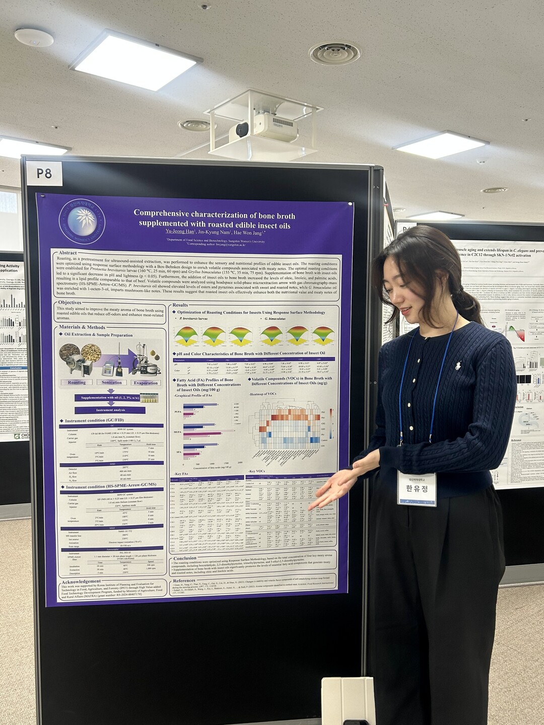 한유정 학생은 Comprehensive characterization of bone broth supplemented with roasted edible insect oils’을 주제로 연구 결과를 발표했다.
