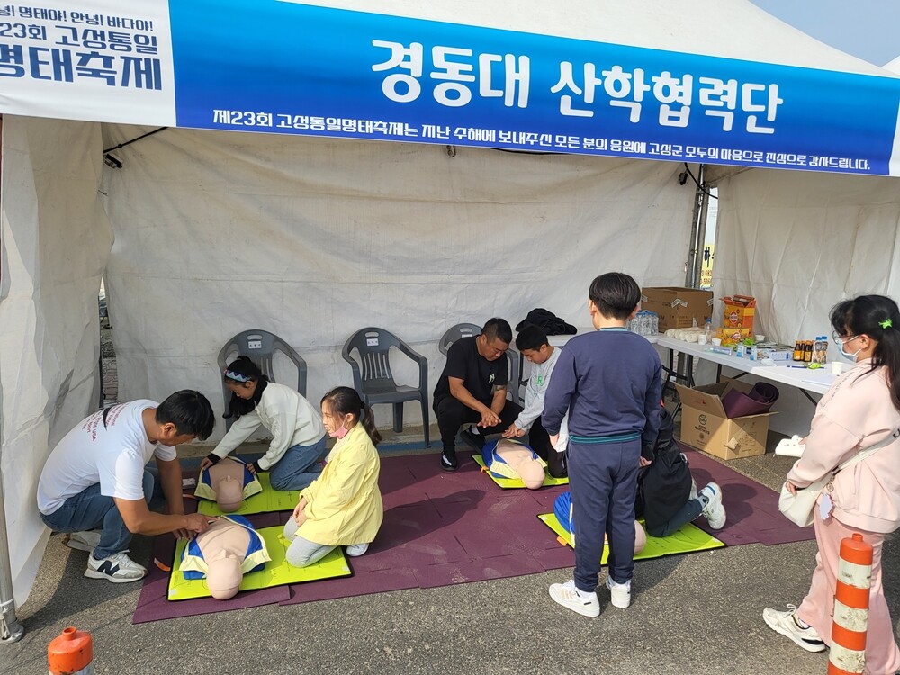 경동대가 ‘고성군 통일명태축제’에 부스를 설치하고 방문자 대상 봉사활동을 하고 있다. 사진=경동대 제공 |