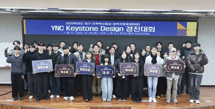 [대학저널 온종림 기자] 영남이공대학교가 26일 천마스퀘어 1033강의실에서 ‘2025학년도 산학공동교육 키스톤디자인 경진대회’를 개최하고, 산업체 연계 교육을 통해 학생들이 수행한 실무 중심 프로젝트 성과를 공유했다.