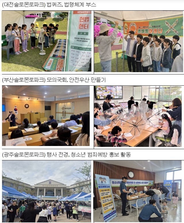 또한, 경찰서·소방서·어린이교통공원·아동보호전문기관·마약퇴치운동본부 등 총 43개 유관기관이 협력하여 운영하는 체험 부스 등을 통해 생활 속 유익한 법률 정보를 생생하게 전달하고 시민들에게 특별한 추억을 선사할 계획이다.