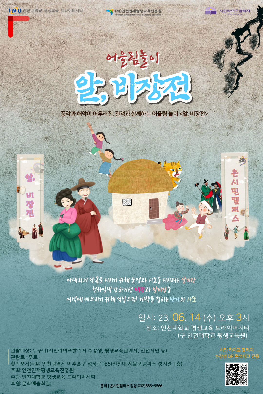 관람료는 무료이며, 공연 안내는 인천대 평생교육 트라이버시티로 문의하면 된다.