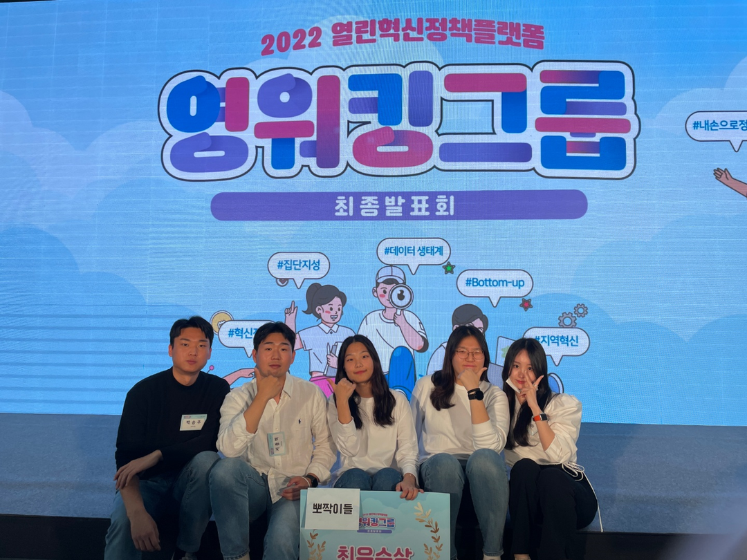 [대학저널 온종림 기자]조선대학교 신문방송학과와 정치외교학과 학생으로 구성된 뽀짝이들팀이 한국개발연구원(KDI)이 주최한 2022년 열린혁신 정책플랫폼 영워킹그룹 최종 발표회에서 최우수상을 수상했다.
