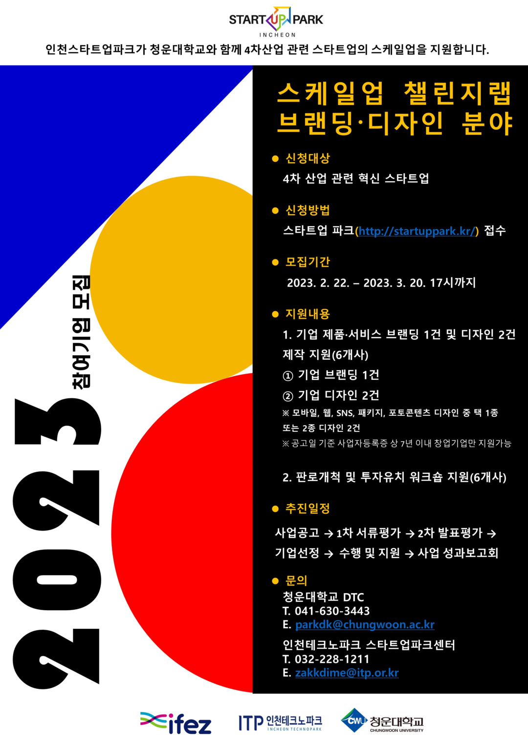 신청을 원하는 기업은 인천 스타트업파크 홈페이지를 통해 신청 가능하며 문의는 청운대 취·창업혁신원으로 하면 된다.