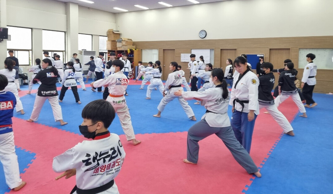 이날 캠프는 태권도 시범단 공연을 시작으로 초등부와 중등부, 고등부 등 수준에 맞는 태권도 교육을 진행, 지도진들의 교육과 재학생 맨투맨 교육으로 참가자들의 흥미와 관심을 높였다.