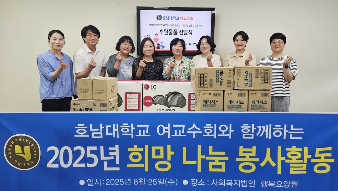 [대학저널 이선용 기자] 호남대학교 여교수회는 6월 25일 광주광역시 동구에 위치한 사회복지법인 행복요양원을 방문해 ‘희망 나눔 봉사활동’을 진행했다.
