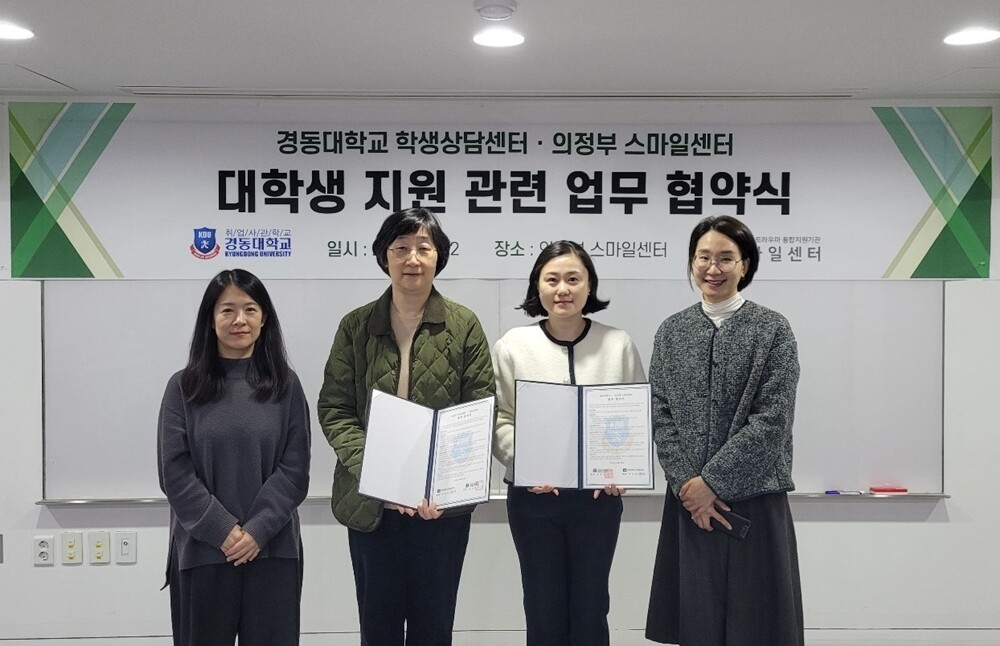 [대학저널 온종림 기자] 경동대학교가 1일 의정부스마일센터와 업무협약을 체결했다. 스마일센터는 범죄 피해자 및 그 가족의 트라우마 치유를 통합지원하는 기관으로, 법무부가 외부에 위탁해 운영한다.