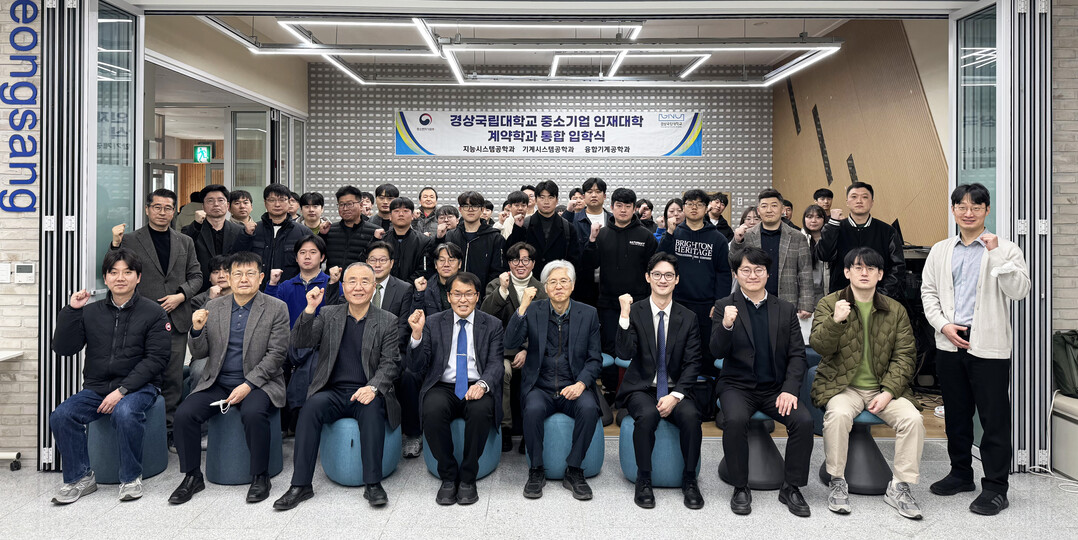 [대학저널 이선용 기자] 경상국립대학교는 3월 7일 오전 창원산학캠퍼스에서 중소기업 인재대학 계약학과 학사·석사·박사과정(산업체 재직자 학위과정) 신입생 통합 입학식을 개최했다. 이번에 학사과정에는 20명, 석사과정에는 20명, 박사과정에는 10명이 입학했다.
