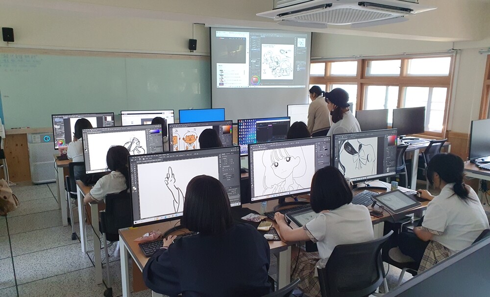 경기과기대 웹툰일러스트학과가 지난 6일 선일빅데이터고등학교 ‘2023 빅데이터 소셜 미디어 캠프’에 참여해 고교생 대상 멘토 특강을 했다. 사진=경기과기대 제공 |