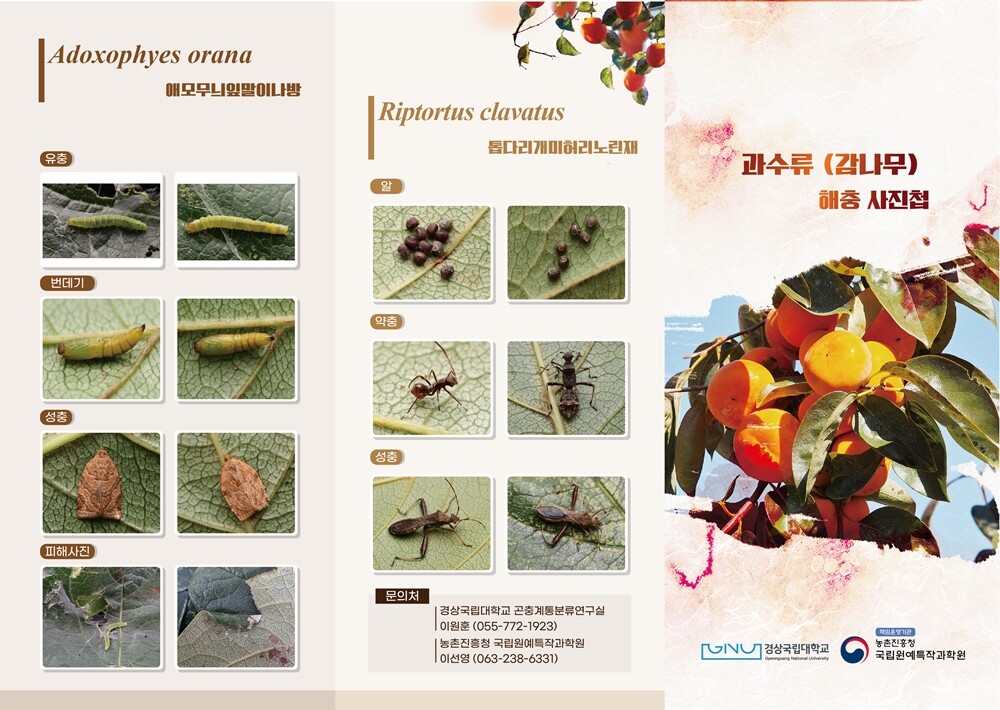 [대학저널 온종림 기자] 경상국립대학교 농업생명과학대학 식물의학과 이원훈 교수 연구팀이 과수류에 발생하는 해충의 예찰 강화를 위한 ‘과수류(감나무) 발생 해충 사진첩’을 발간했다.