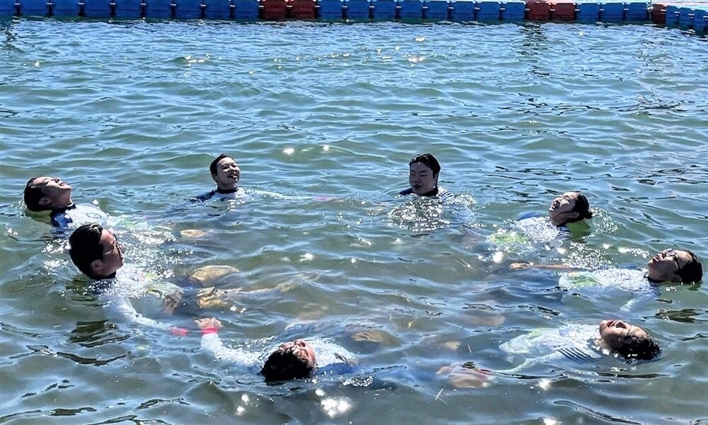 [대학저널 대학저널] 안양대학교 스포츠지도학과와 체육학과 학생들로 구성된 수영동아리 벨루가팀이 10일 ‘2023 기네스 챌린지 삼척’에서 원더풀 부문 1위를 차지했다.