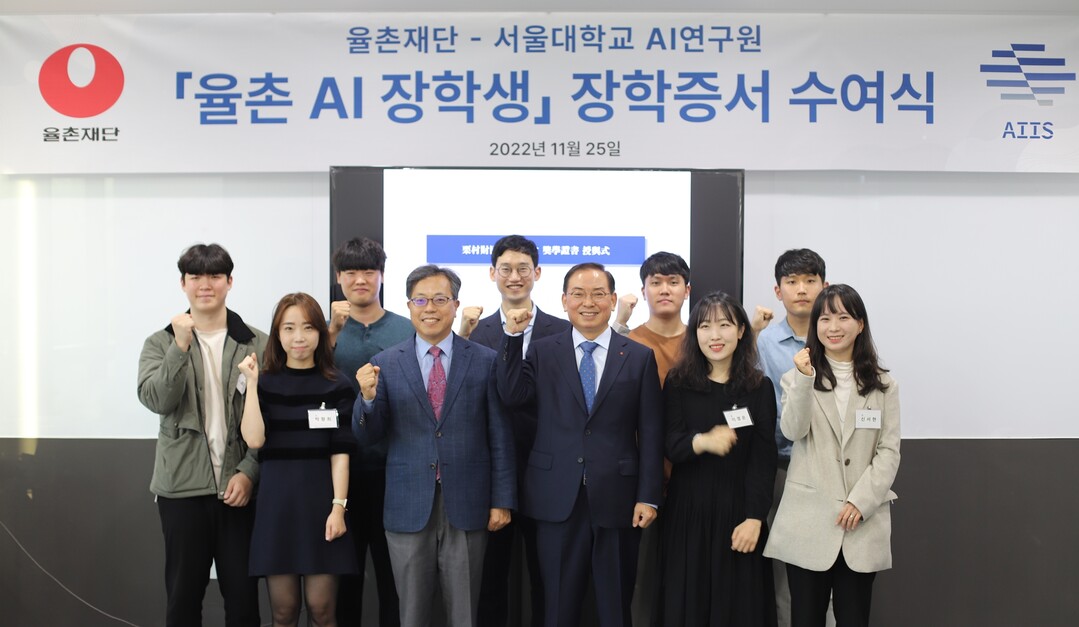 [대학저널 온종림 기자]서울대학교 AI연구원이 농심그룹 율촌재단의 지원으로 서울대 재학생 중 AI 응용연구를 수행하는 우수한 10명을 장학생으로 선발하고 지난달 25 장학증서 수여식을 개최했다.