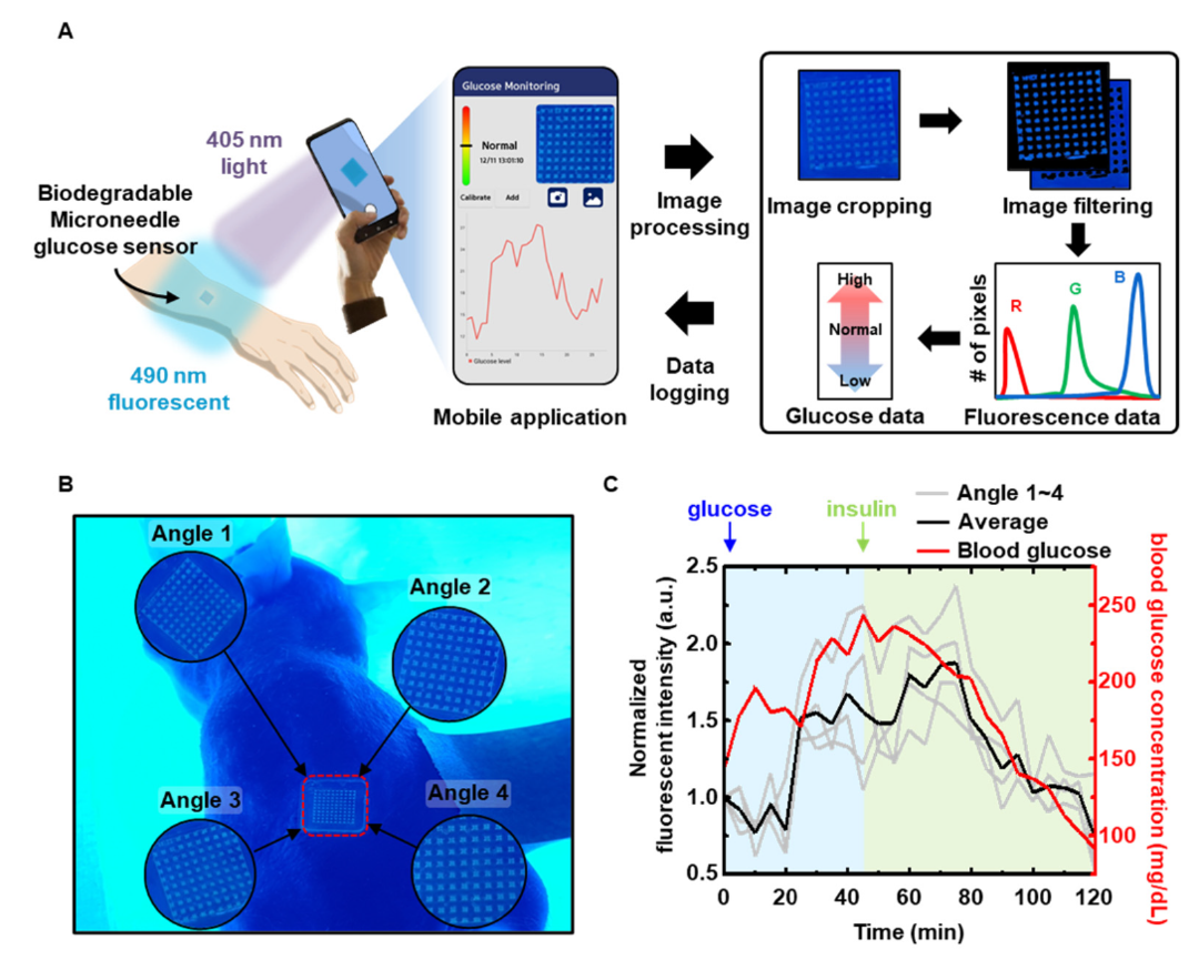 이번 연구 결과는 ‘Fluorescent based Biodegradable Microneedle Sensor Array for Tether-free Continuous Glucose Monitoring with Smartphone Application’이란 논문으로 국제학술지인 (IF=14.980)에 게재됐다.