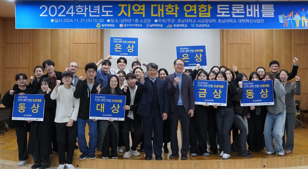 [대학저널 이선용 기자] 광주대학교 문예창작과 ‘최강라이티’ 팀(김도헌, 오승준, 차승준)이 ‘2024학년도 지역 대학 연합 토론배틀’에서 대상을 차지했다.