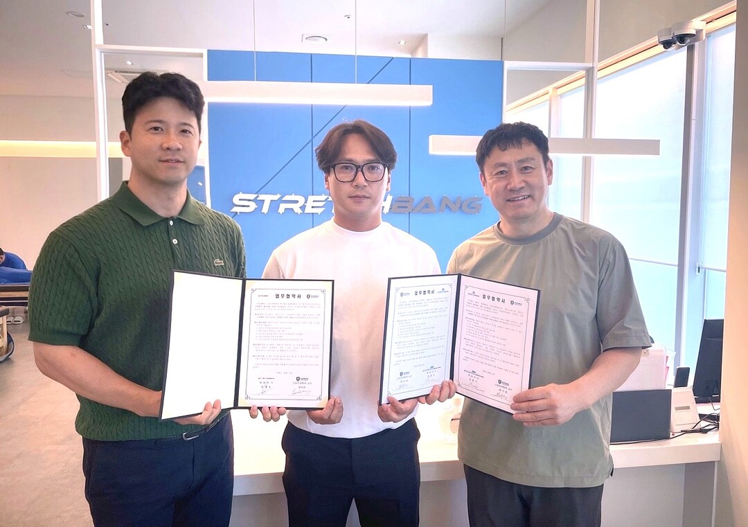 왼쪽부터 주식회사 팀제이맥스 대표 장광진, 스포츠과학과 교수 한이준, 주식회사 참핏 대표 문훈기. |