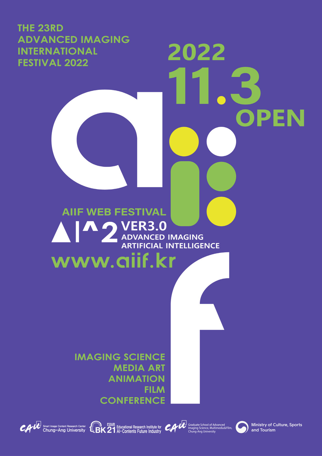 ‘AI^2(Advanced Imaging & Artificial Intelligence) ver 3.0’을 슬로건으로 내세운 이번 AIIF(Advanced Imaging International Festival) 첨단영상국제페스티벌과 국제콘퍼런스에서는 7개국 11명의 예술가·전문가·대학원생의 작품 110여 편이 전시될 예정이다.