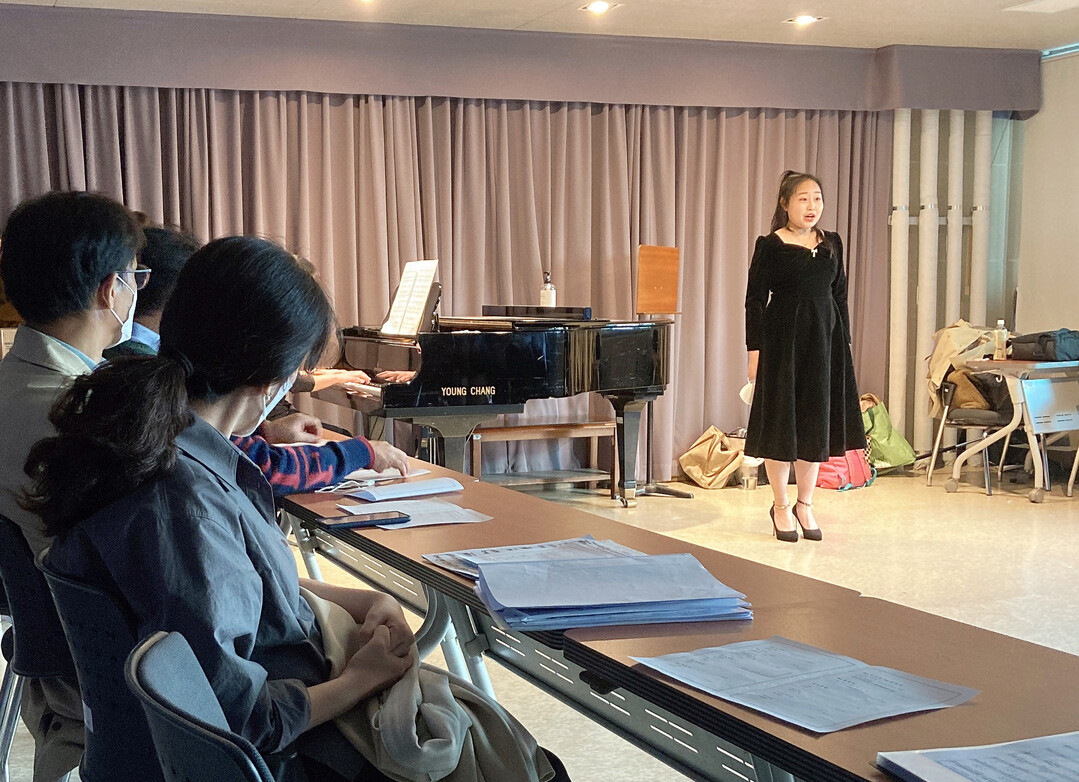 가천대 성악과 이이정 학생이 한중교류음악회를 앞두고 독창 연습을 하고 있다. 사진=가천대 제공 |