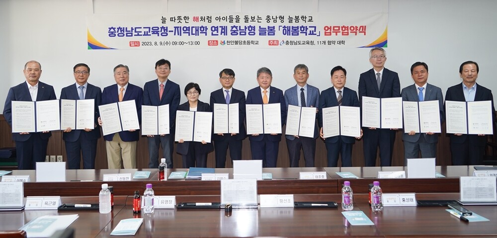 이번 업무협약은 국정과제 중 하나인 초등 전일제 교육(돌봄교실을 오후 8시까지 확대)을 위한 충남교육청의 프로젝트인 충남형 늘봄학교(해당학교)에 대학들이 참여해 내실화를 기하기 위한 목적으로 체결됐다.