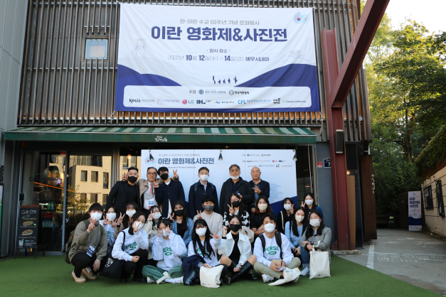 | 한-이란 수교 60주년 기념 영화제·사진전에서 참석자들이 기념촬영을 하고 있다. 사진=한국외대 제공 |