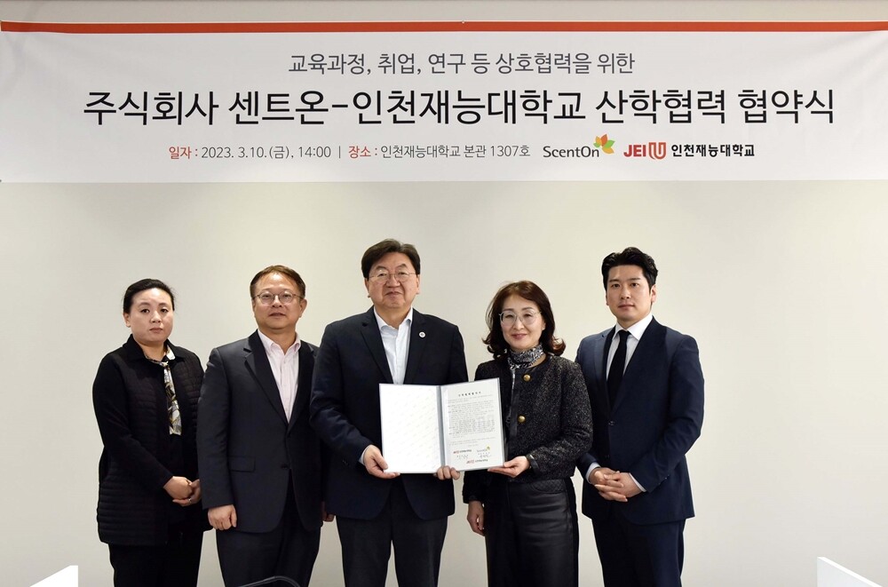 [대학저널 온종림 기자] 인천재능대학교는 최근 센트온과 산학협약을 체결하고 교육과정 공동개발과 현장실습, 취업지원 등 산학협력 활성화를 위해 상호협력하기로 했다고 15일 밝혔다.