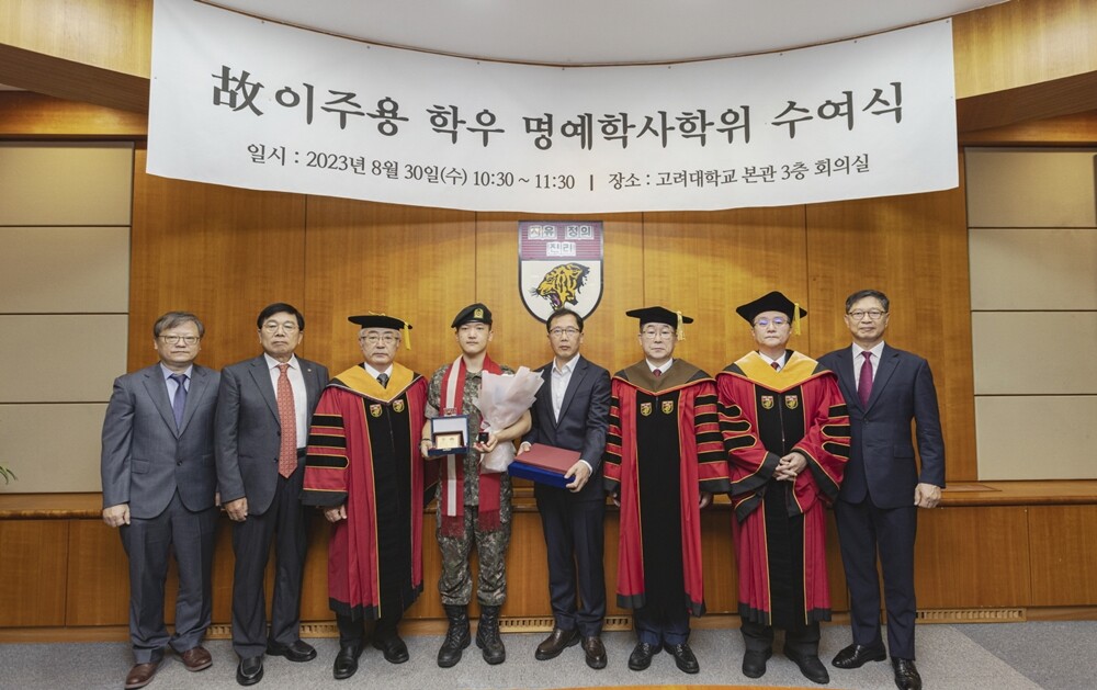고려대은 30일 본관 제2회의실에서 ‘故이주용 학생 명예학위수여식’을 개최했다.