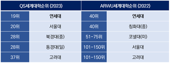 세부 전공별로 세계대학순위를 발표하는 QS와 ARWU랭킹에서 모두 연세대 행정학과가 국내 1위를 달성했다. 두 랭킹 모두 연세대에 이어 국내 2위는 서울대 행정대학원, 3위는 고려대 행정학과가 차지했다.