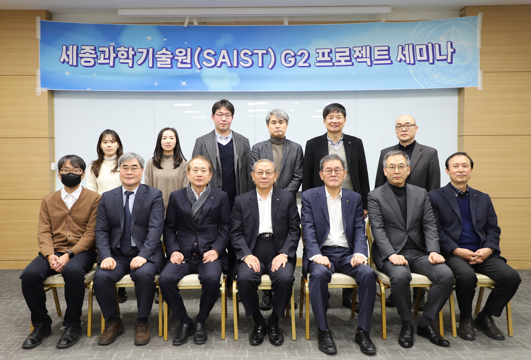 지난 2월 2일 세종대 대양AI센터에서 개최된 세종과학기술원 G2 프로젝트(VISION 2045Ⅲ) 세미나 참석자들이 기념촬영을 하고 있다. 사진=세종대 제공 |