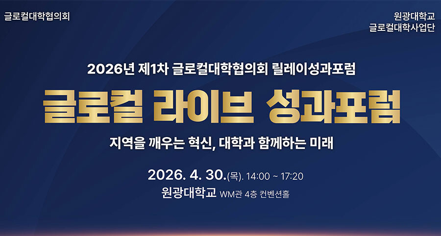 [대학저널 이선용 기자] 글로컬대학협의회 회장교를 맡고 있는 원광대학교가 오는 30일 오후 2시 교내 WM관 컨벤션홀에서 ‘글로컬 라이브(Glocal LIVE) 성과포럼’을 개최한다.