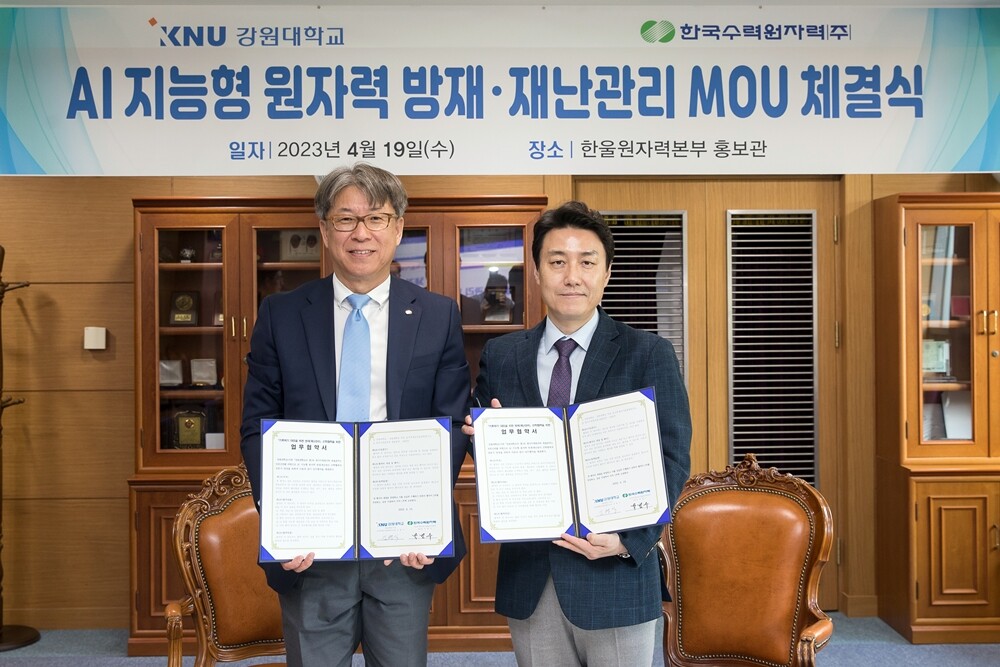 [대학저널 온종림 기자] 강원대학교 AI기후재난기술융합연구소가 지난달 19일 한국수력원자력 한울본부와 기후 위기 대응을 위한 방재·재난관리 산학협력을 위한 MOU를 체결했다.