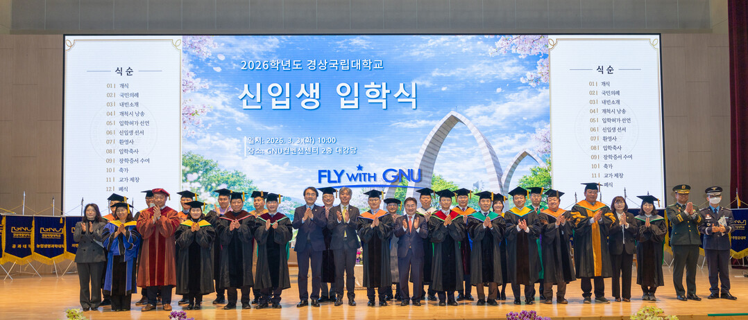 [대학저널 이선용 기자] 경상국립대학교는 3월 3일 오전 10시 가좌캠퍼스 GNU 컨벤션센터 2층 대강당에서 2026학년도 입학식을 개최했다.