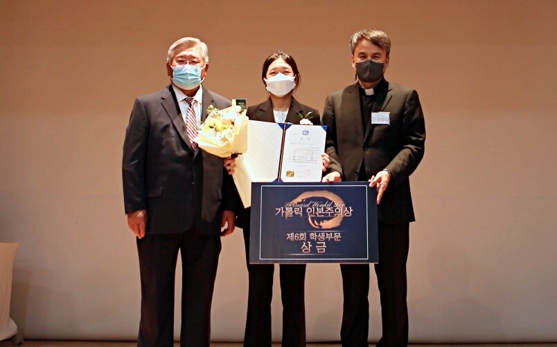 가톨릭대 의학과 김승연 학생이 BWL 이원길 가톨릭인본주의상 제6회 학생부문상을 수상했다. 김승연 학생(가운데), MD&KH Lee Foundation 이덕선 회장(왼쪽), 가톨릭대 원종철 총장(오른쪽). |