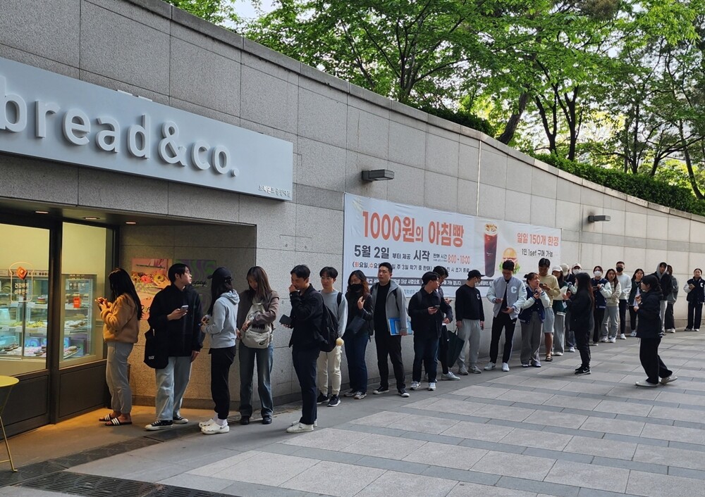 중앙대 서울캠퍼스 학생들이 천원의 아침빵을 먹기 위해 줄을 서서 순서를 기다리고 있다. 사진=중앙대 제공 |